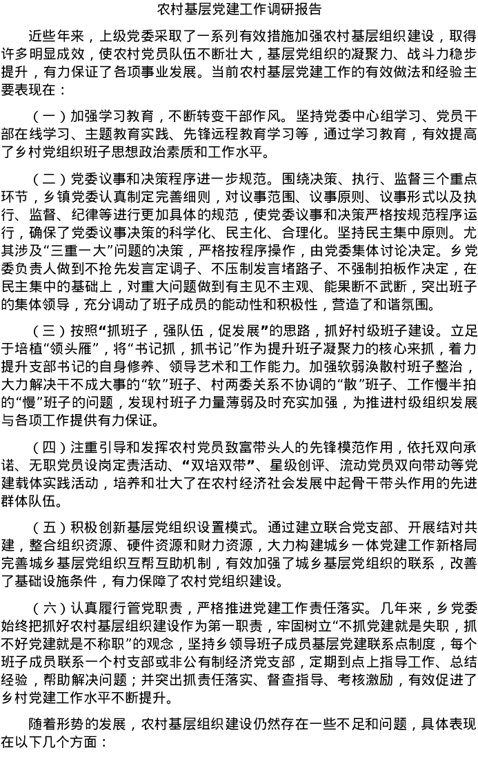 20220529农村基层党建工作调研报告