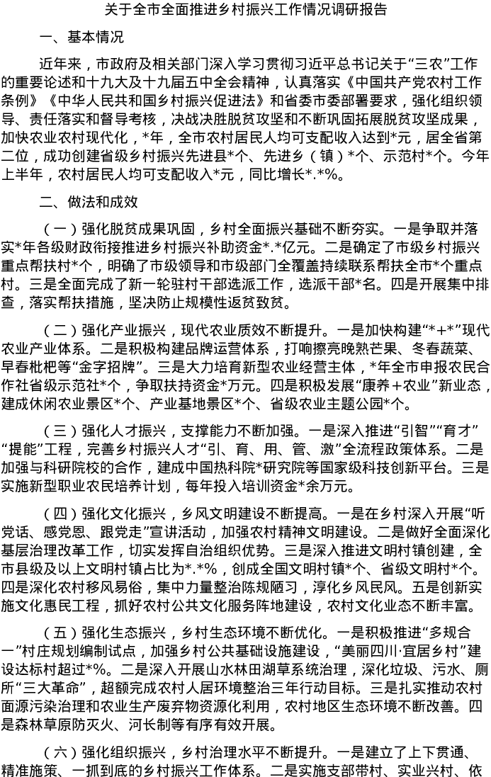 20220531关于全市全面推进乡村振兴工作情况调研报告