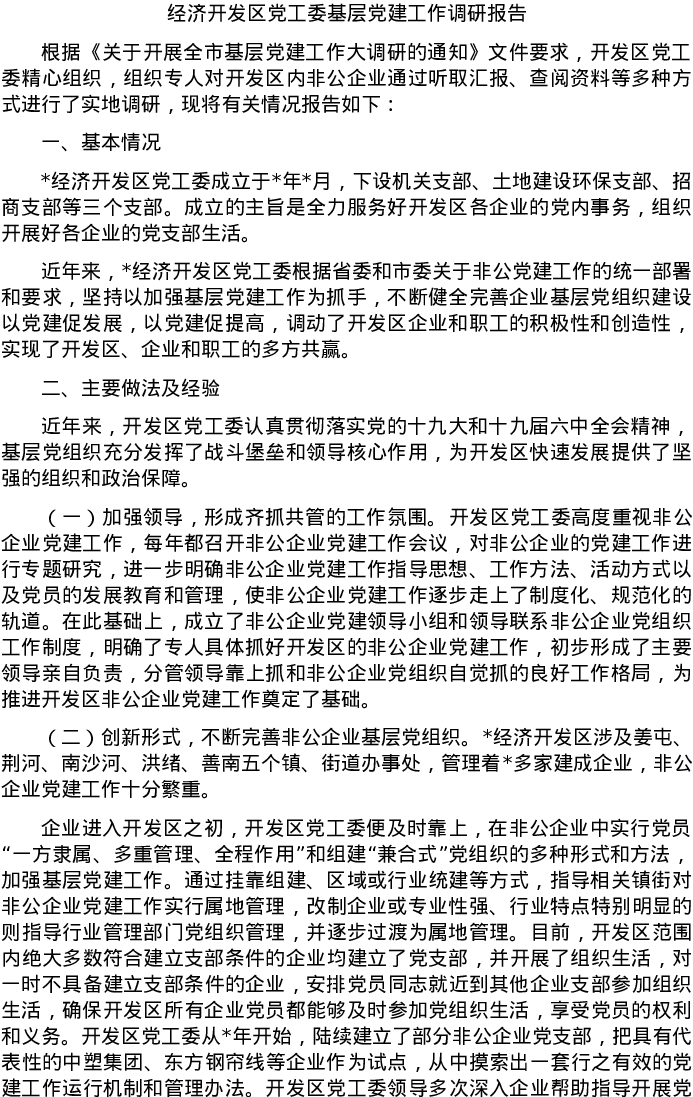 20220604经济开发区党工委基层党建工作调研报告