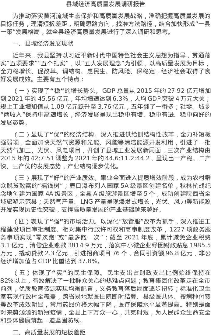 20220613县域经济高质量发展调研报告