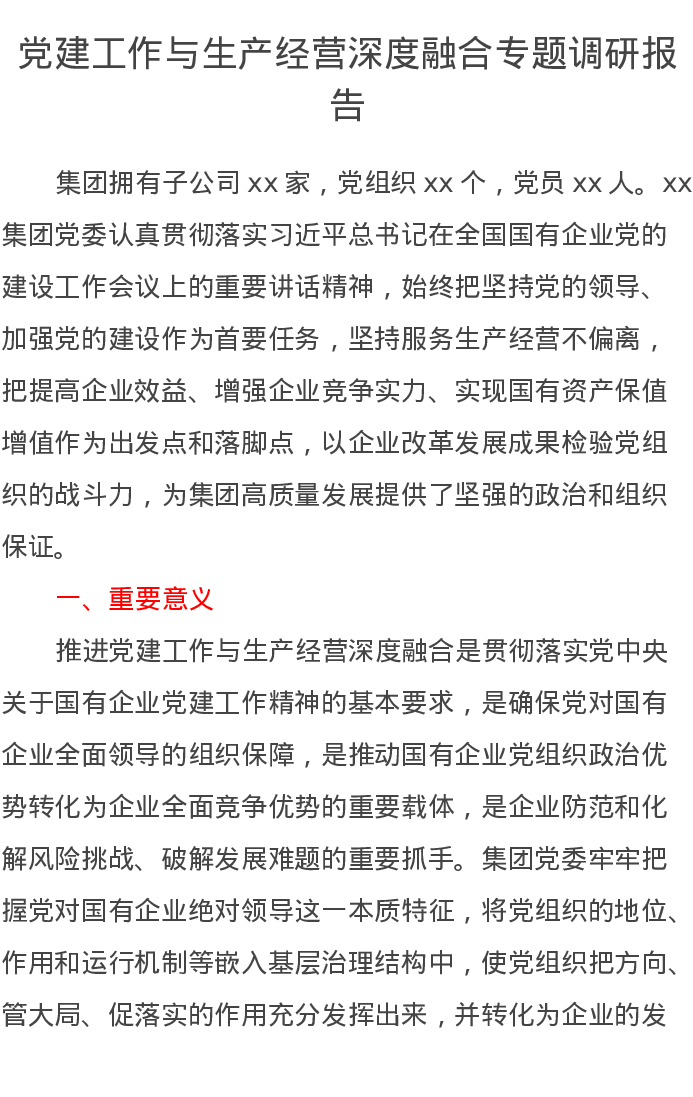 20220703党建工作与生产经营深度融合专题调研报告
