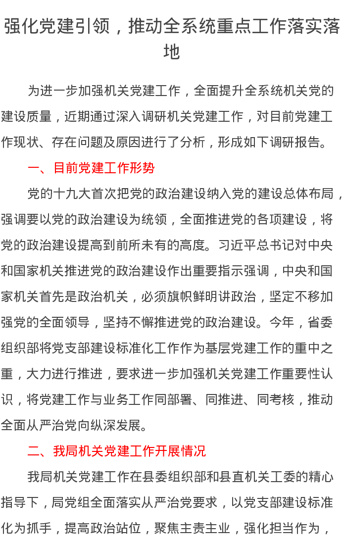 20220714强化党建引领,推动全系统重点工作落实落地调研报告