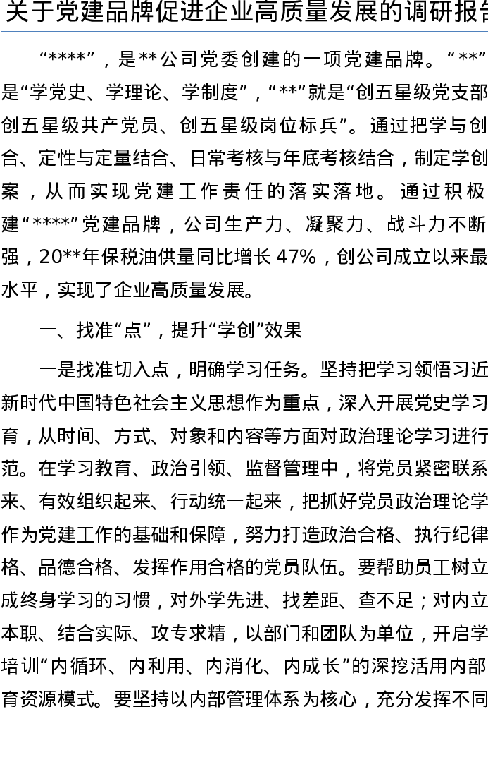 20220803关于党建品牌促进企业高质量发展的调研报告