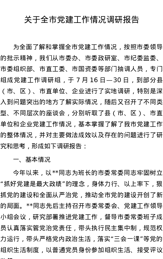 20220808关于全市党建工作情况调研报告
