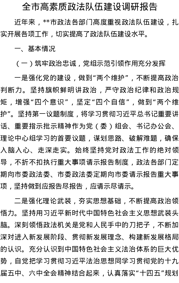 20220822全市高素质政法队伍建设调研报告