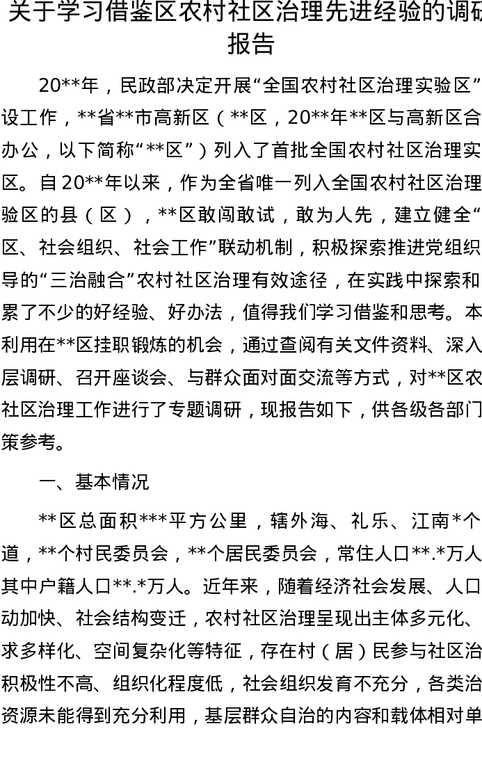 20220829关于学习借鉴区农村社区治理先进经验的调研报告