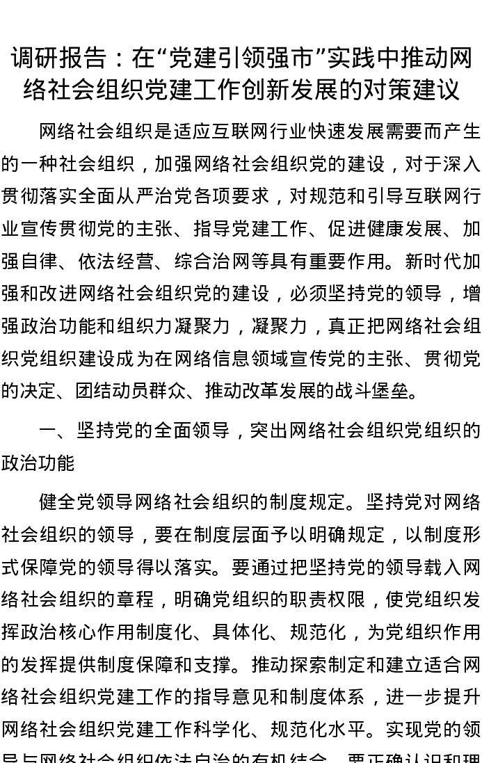 20220914调研报告:在“党建引领强市”实践中推动网络社会组织党建工作创新发展的对策建议