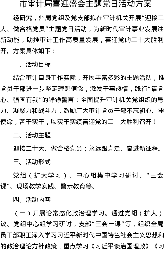 20220909市审计局喜迎盛会主题党日活动方案