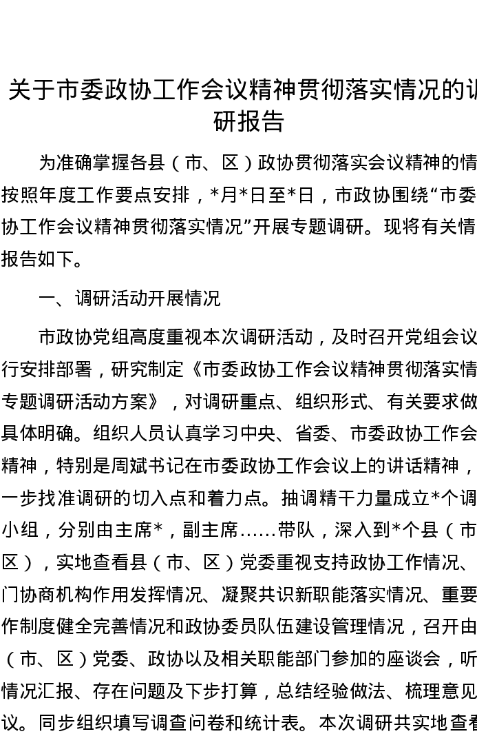 20220926关于市委政协工作会议精神贯彻落实情况的调研报告
