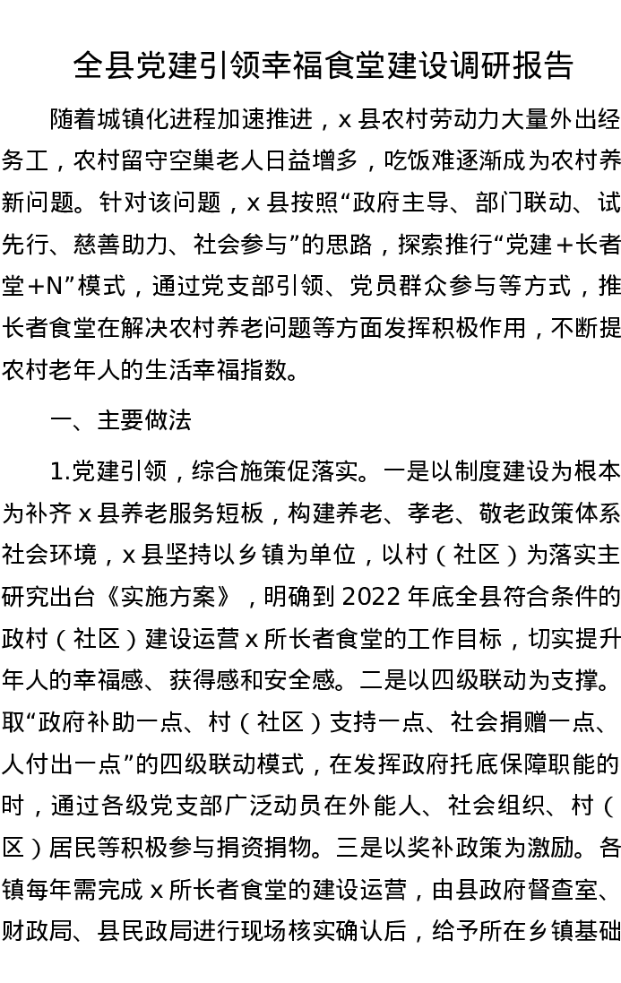 20220927全县党建引领幸福食堂建设调研报告