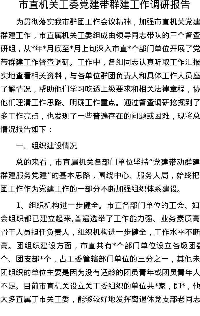 20220930市直机关工委党建带群建工作调研报告