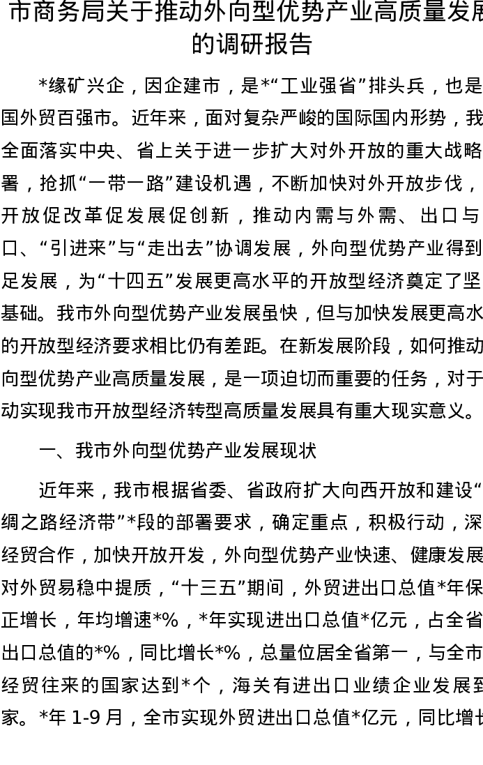 20221001市商务局关于推动外向型优势产业高质量发展的调研报告