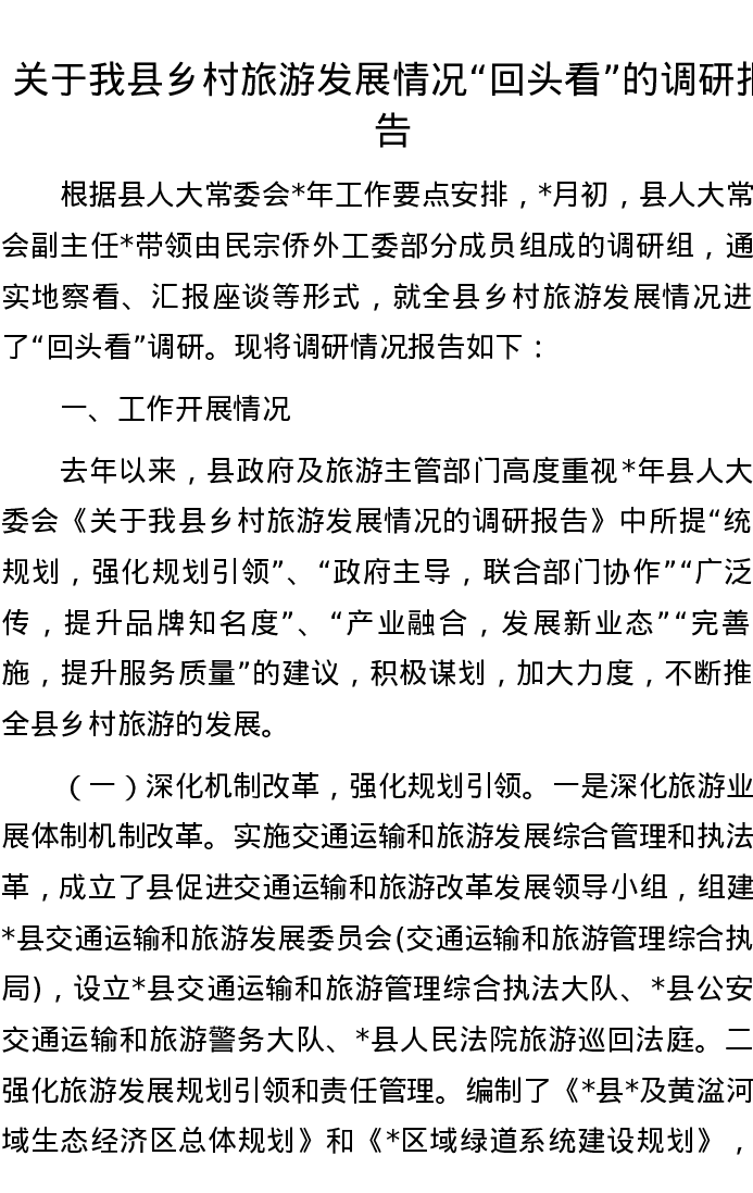 20221015关于我县乡村旅游发展情况“回头看”的调研报告