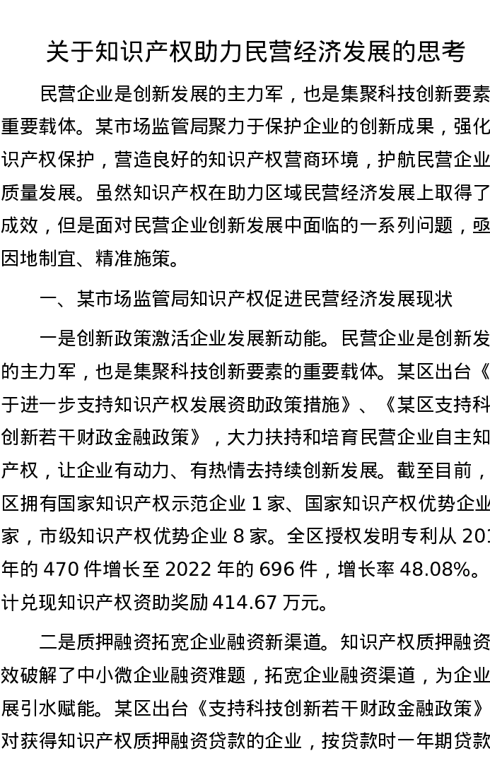 关于知识产权助力民营经济发展的思考