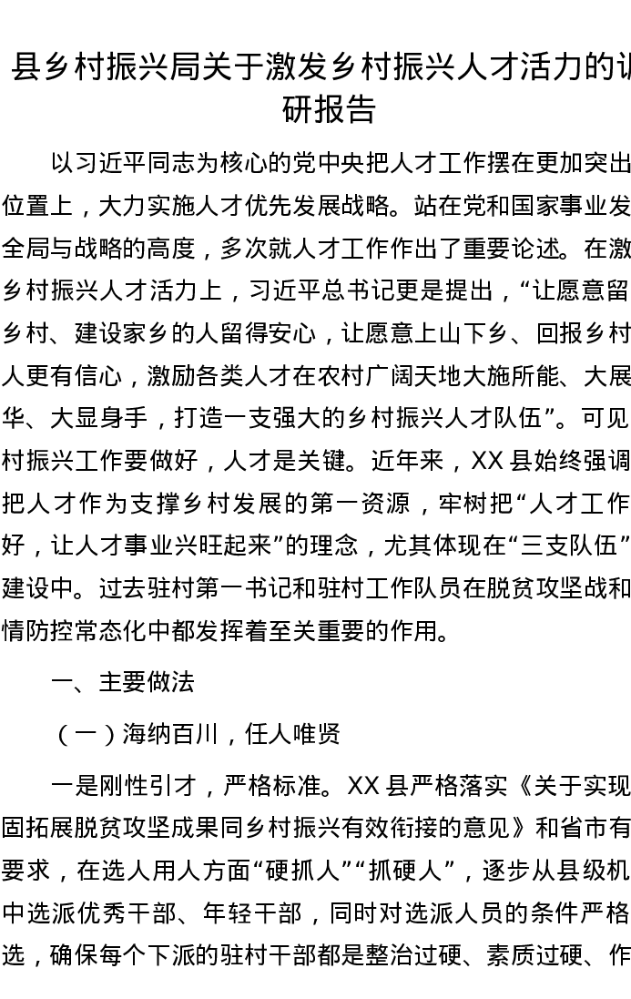 县乡村振兴局关于激发乡村振兴人才活力的调研报告
