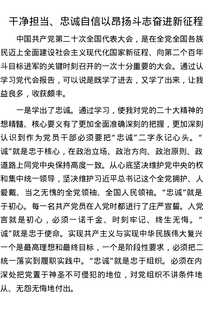 干净担当、忠诚自信 以昂扬斗志奋进新征程