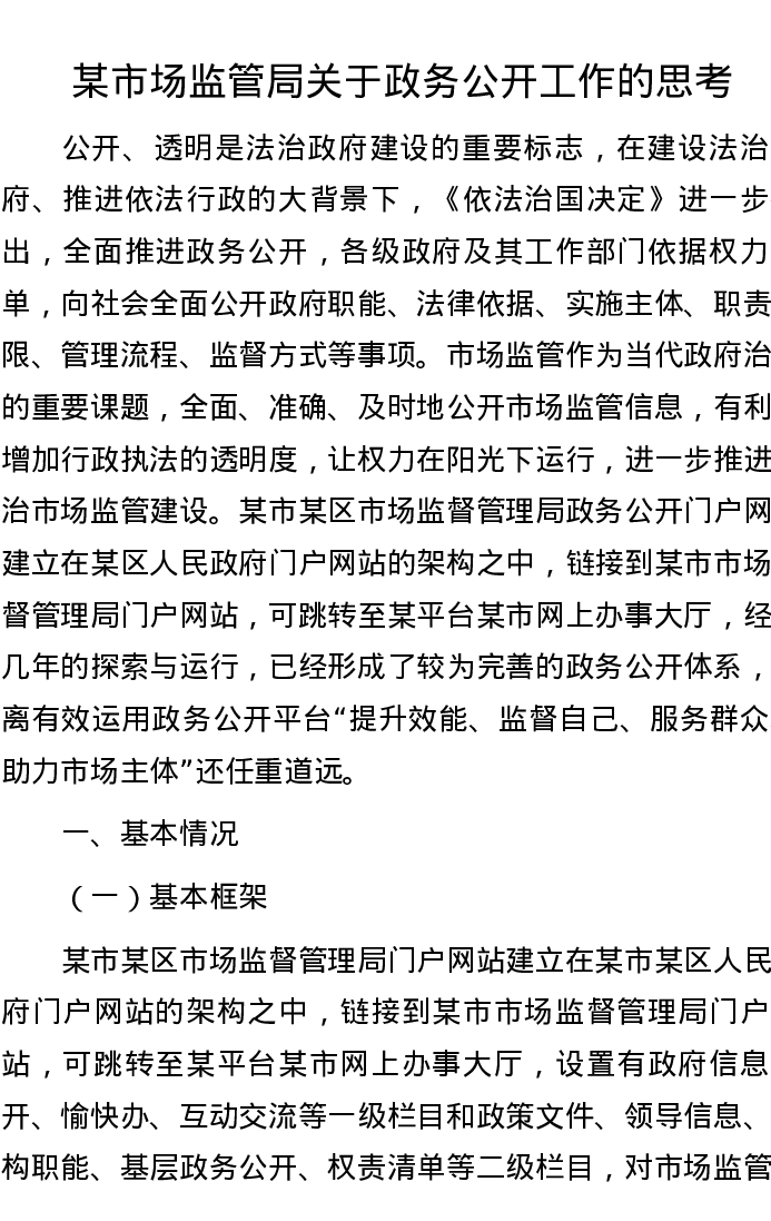 某市场监管局关于政务公开工作的思考