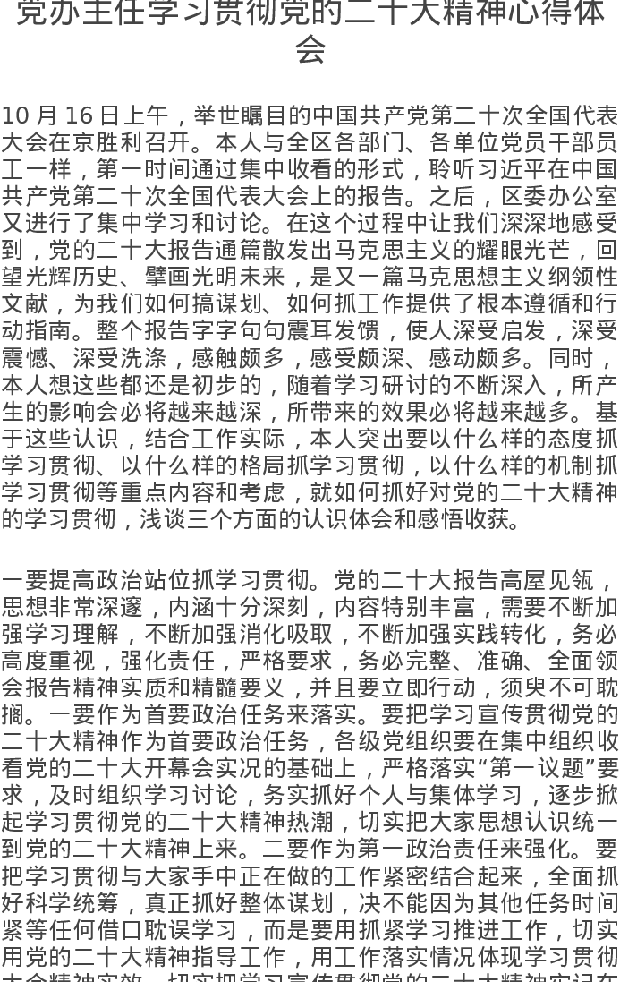 党办主任学习贯彻党的精神心得体会
