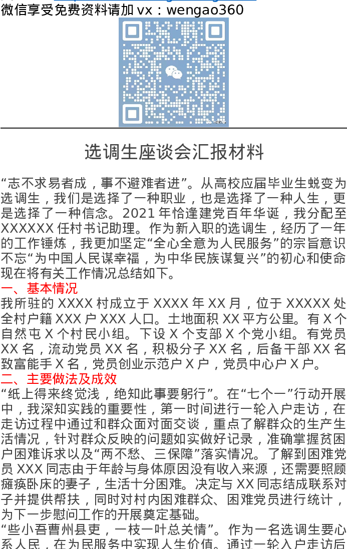 选调生座谈会汇报材料