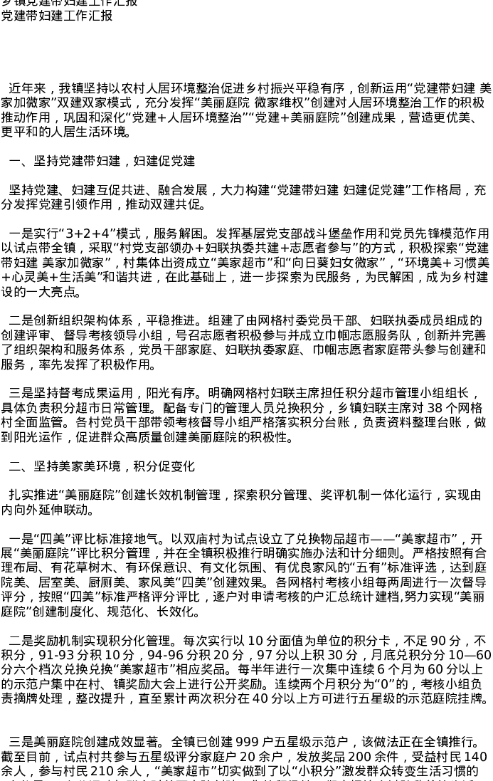 乡镇党建带妇建工作汇报