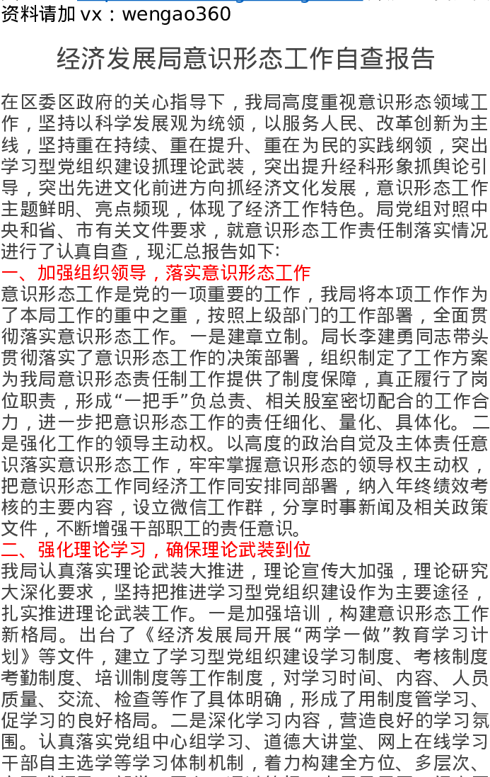 经济发展局意识形态工作自查报告