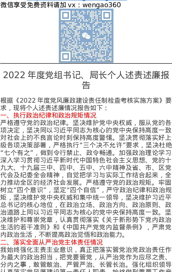 2022年度党组书记、局长个人述责述廉报告