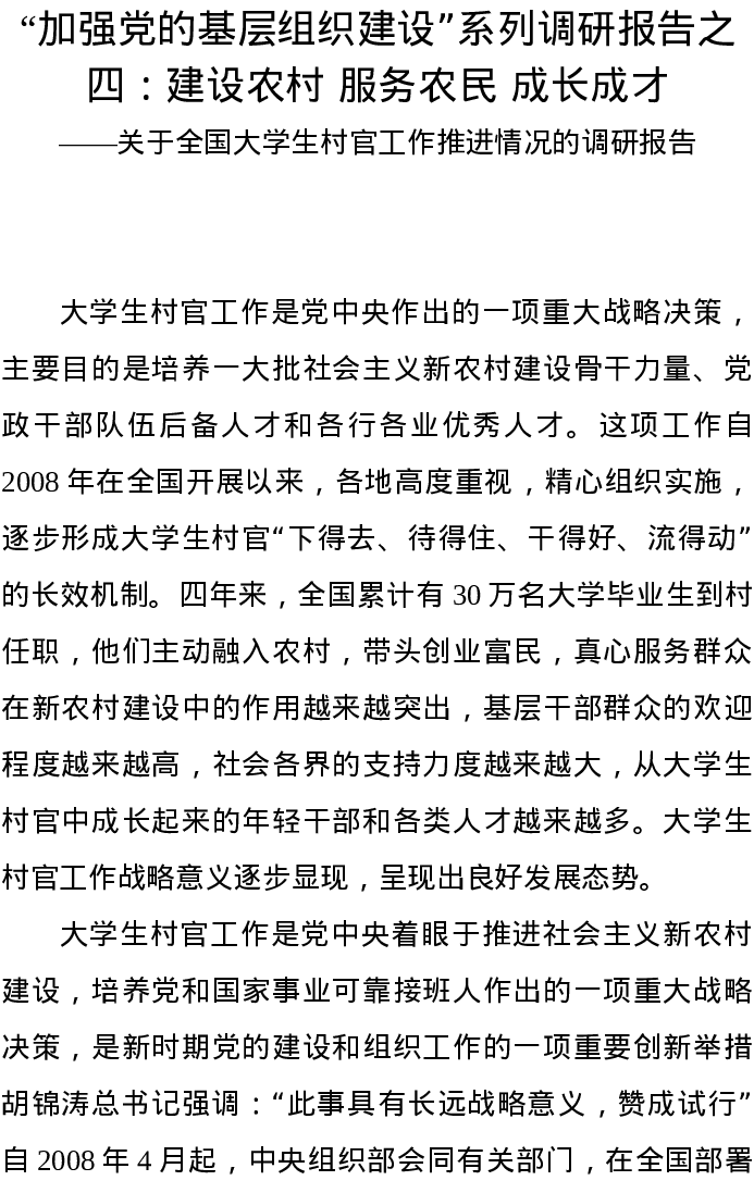 关于全国大学生村官工作推进情况的调研报告:建设农村 服务农民 成长成才11