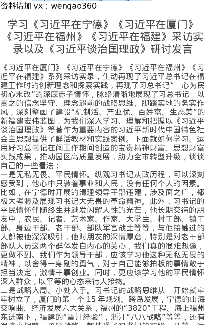 学习总书记《在宁德》《在厦门》《在福州》《在福建》采访实录以及《谈治国理政》研讨发言