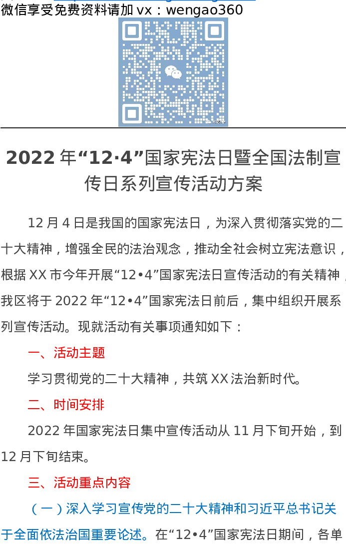 2022年“12·4”国家宪法日暨全国法制宣传日系列宣传活动方案