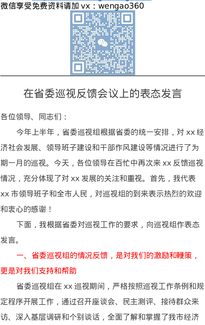 在省委巡视反馈会议上的表态发言