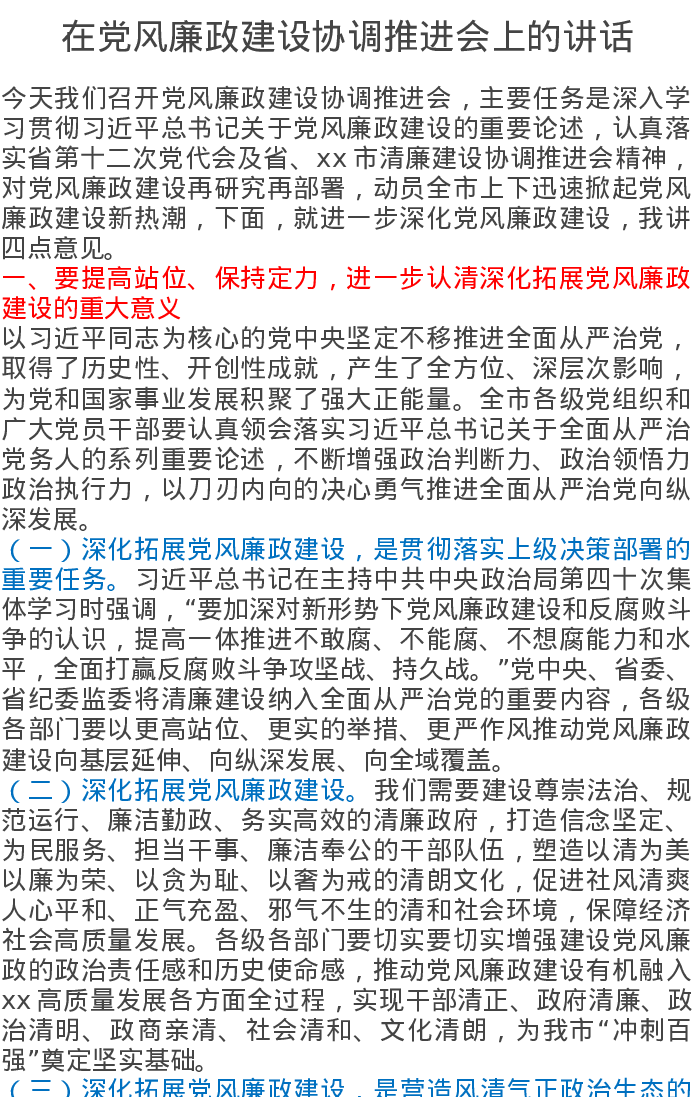 在党风廉政建设协调推进会上的讲话