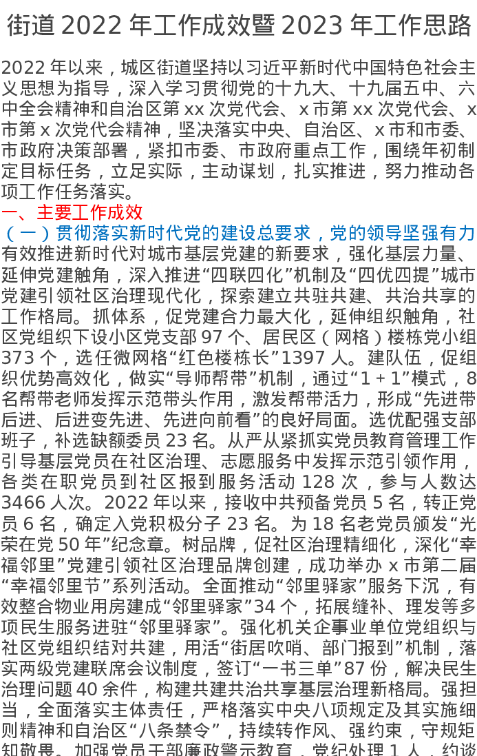 街道2022年工作成效暨2023年工作思路