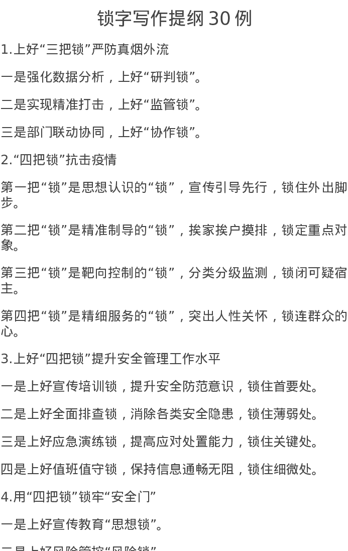 锁字写作提纲30例