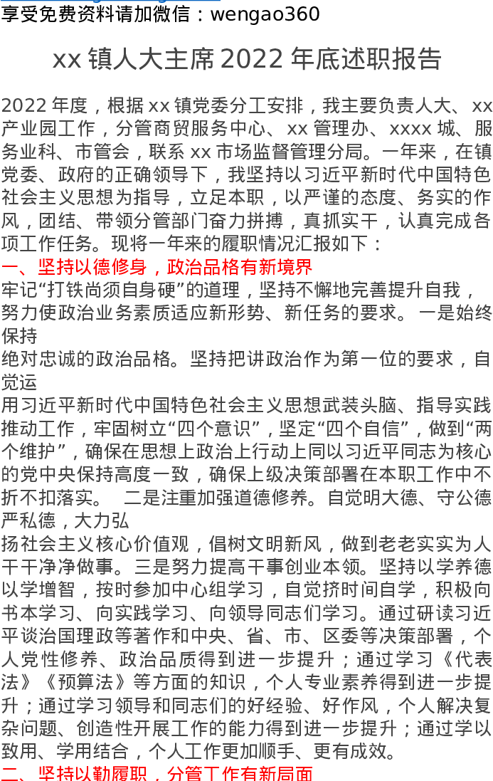 xx镇人大主席2022年底述职报告