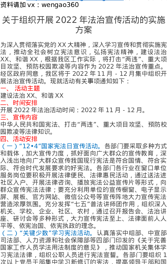 关于组织开展2022年法治宣传活动的实施方案