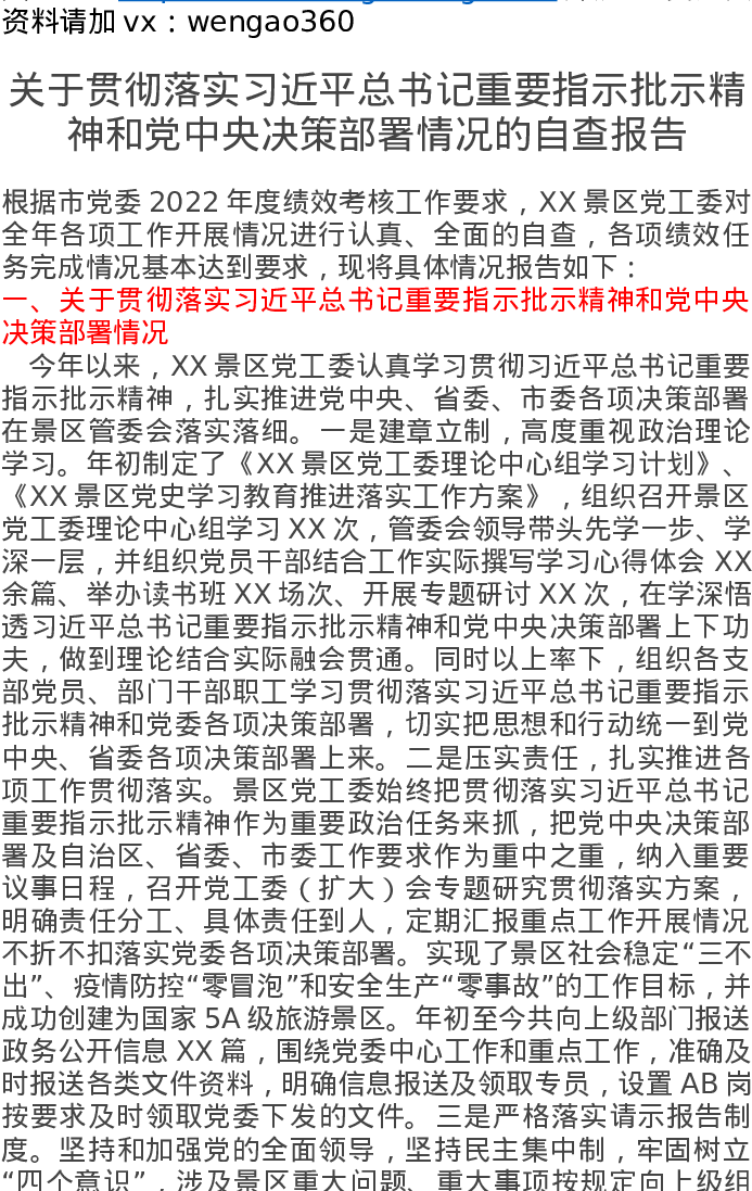 关于贯彻落实习近平总书记重要指示批示精神和党中央决策部署情况的自查报告