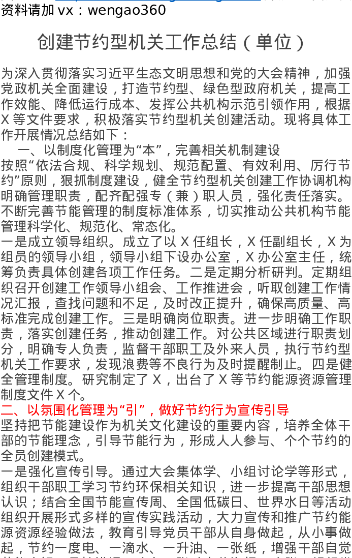 创建节约型机关工作总结(单位)