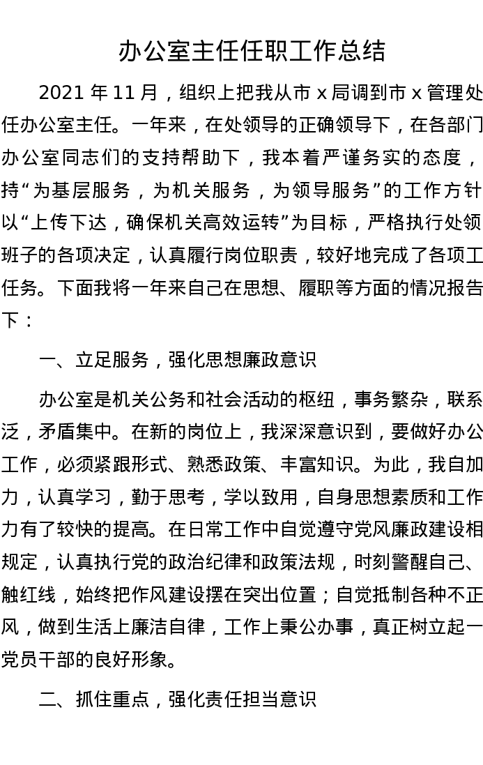 20221103办公室主任任职工作总结