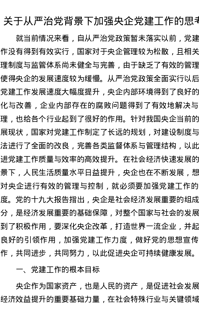 20221102关于从严治党背景下加强央企党建工作的思考