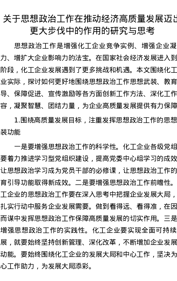 20221102关于思想政治工作在推动经济高质量发展迈出更大步伐中的作用的研究与思考