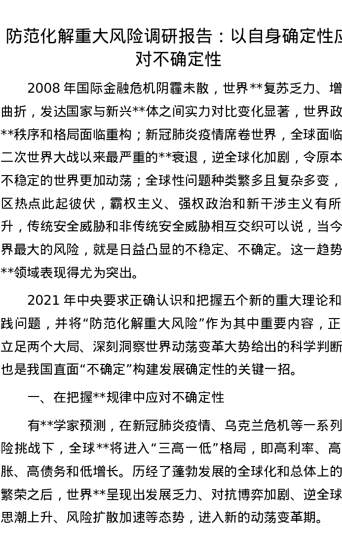 20221104防范化解重大风险调研报告:以自身确定性应对不确定性