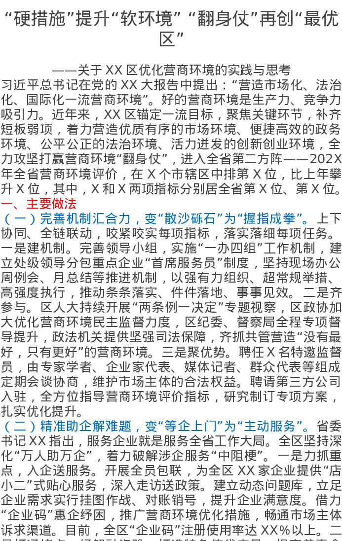 关于XX区优化营商环境的实践与思考