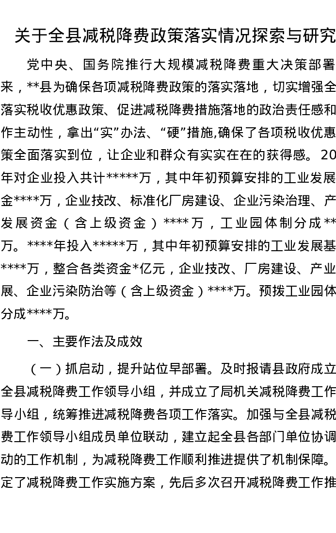 20221111关于全县减税降费政策落实情况探索与研究