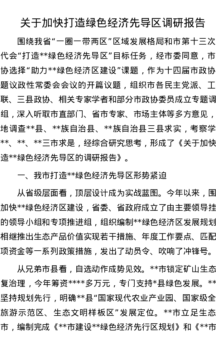 20221112关于加快打造绿色经济先导区调研报告