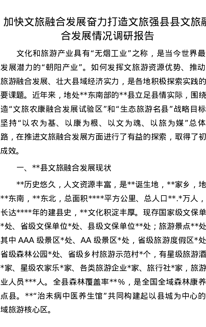 20221112加快文旅融合发展奋力打造文旅强县县文旅融合发展情况调研报告
