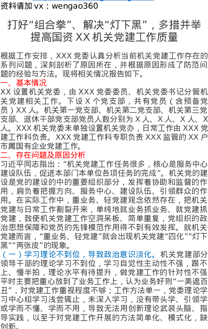 打好“组合拳”、解决“灯下黑”,多措并举 提高国资XX机关党建工作质量
