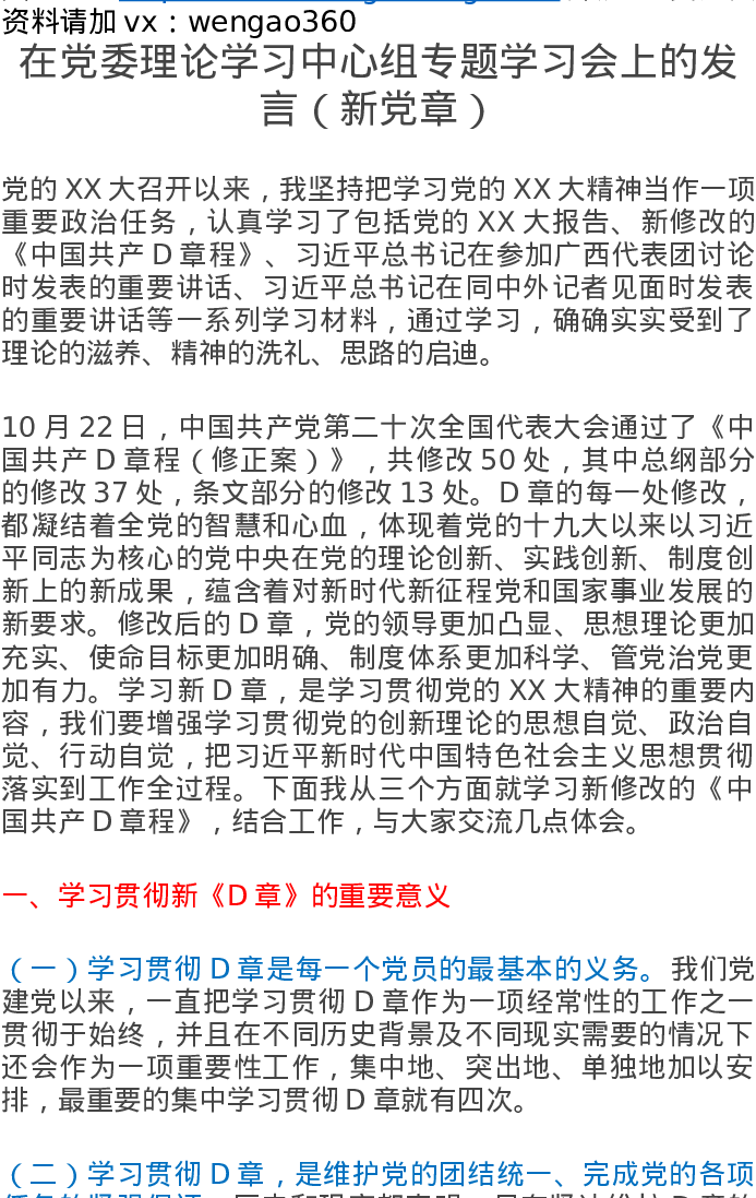 在党委理论学习中心组专题学习会上的发言(新党章)