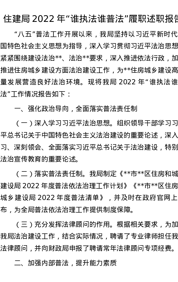 20221116住建局2022年“谁执法谁普法”履职述职报告