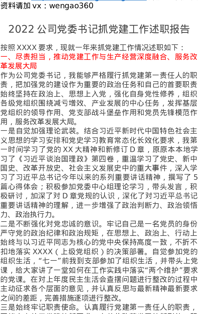 2022公司党委书记抓党建工作述职报告