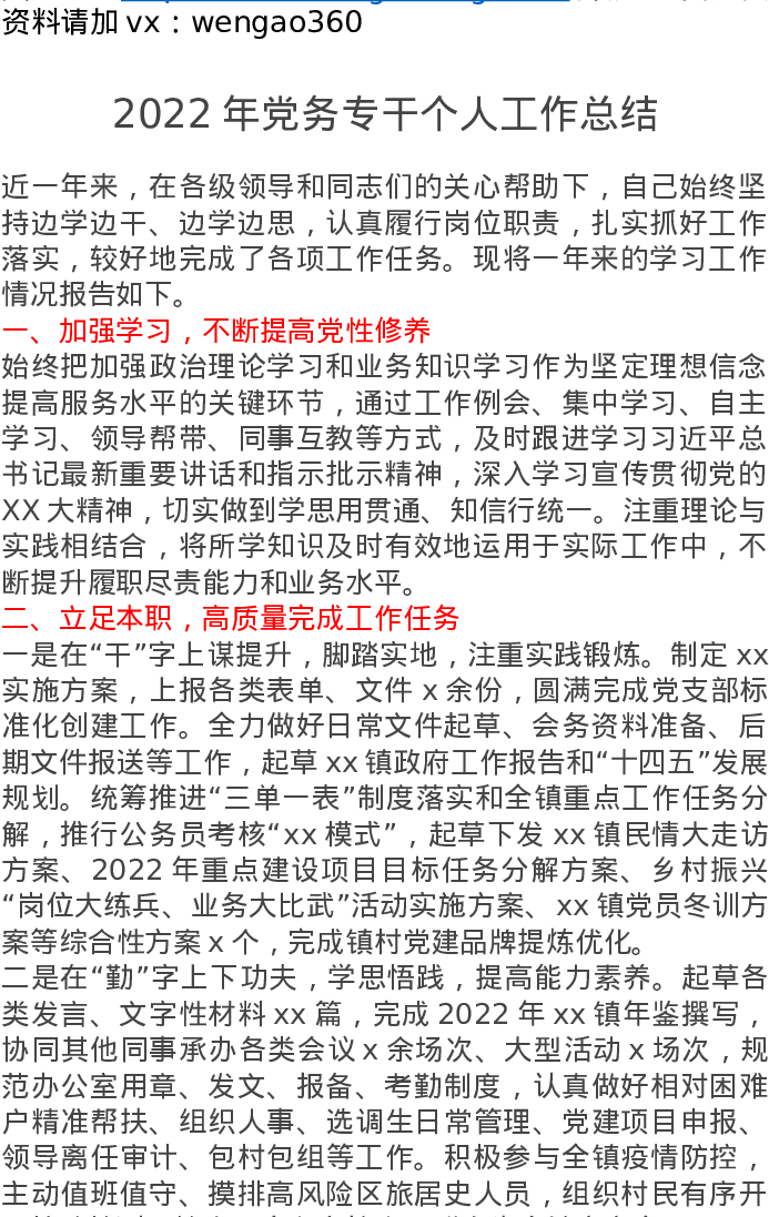 2022年党务专干个人工作总结